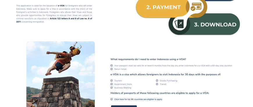 Situs Resmi Pengurusan e-VoA hanya di molina.imigrasi.go.id