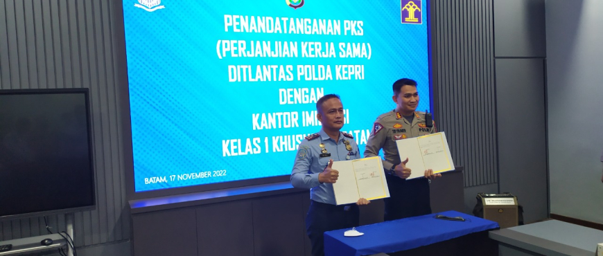 BATAM – Kantor Imigrasi Kelas I Khusus TPI Batam bersama Polda Kepulauan Riau lakukan integrasi data e-Tilang dengan Sistem Manajemen Informasi Keimigrasian (SIMKIM) guna mencegah Warga Negara Asing yang melanggar aturan lalu lintas (ditilang) mangkir dari kewajiban membayar biaya beban. Melalui integrasi data tersebut, petugas di Tempat Pemeriksaan Imigrasi (TPI) bisa melihat notifikasi pengajuan pencegahan dari kepolisian apabila WNA melakukan…