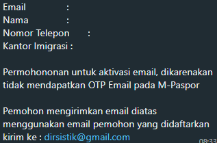 Kantor Imigrasi :Permohononan untuk aktivasi email, dikarenakan tidak mendapatkan OTP Email pada M-Paspor