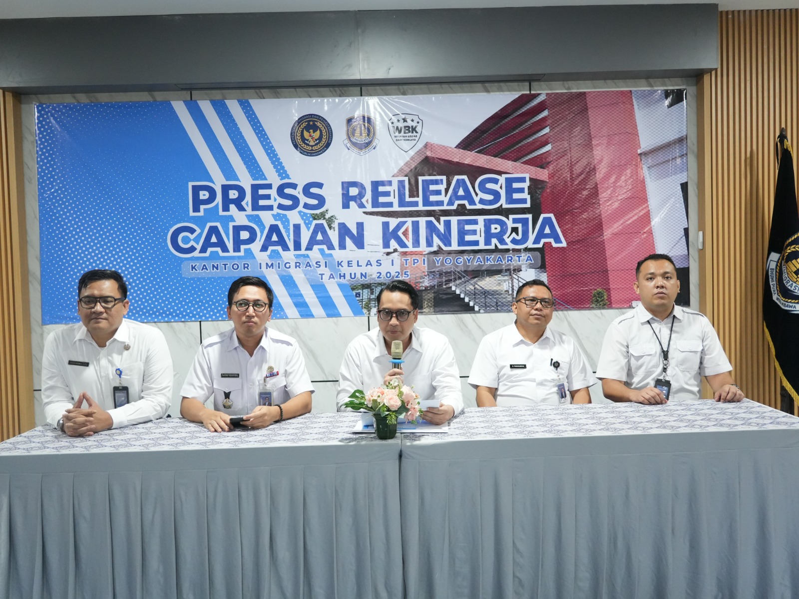 Yogyakarta, 29 Oktober 2025 — Kantor Imigrasi Kelas I TPI Yogyakarta menggelar konferensi pers capaian kinerja tahun 2025 pada Rabu (29/10). Kegiatan ini dipimpin langsung oleh Kepala Kantor Imigrasi Kelas I TPI Yogyakarta, Bapak Tedy Riyandi, didampingi para Kepala Seksi di lingkungan Kantor Imigrasi Yogyakarta.