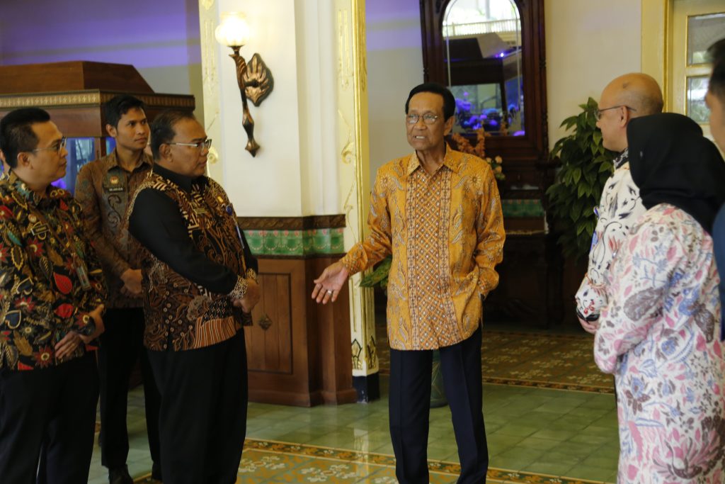 Kepala Kantor Imigrasi Kelas I TPI Yogyakarta Najarudin Safaat bersama Kepala Kantor Wilayah Kemenkumham DIY, Agung Rektono Seto beserta Kepala Divisi Keimigrasian Muhammad Yani Firdaus dan Kepala Divisi Administrasi Rahmi Widhiyanti bertemu dengan Gubernur DIY, Sri Sultan Hamengkubuwono X di Bangsal Kepatihan, Kantor Gubernur DIY pada Kamis (23/02/2023).