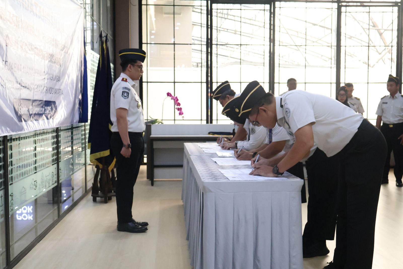 YOGYAKARTA — Kantor Imigrasi Kelas I TPI Yogyakarta menggelar kegiatan penandatanganan Perjanjian Kinerja antara Pejabat Struktural dengan Kepala Kantor Imigrasi Kelas I TPI Yogyakarta, Tedy Riyandi, pada Senin, 19 Januari 2026.