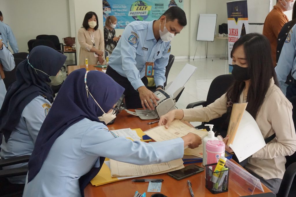 Kantor Imigrasi Kelas I TPI Yogyakarta kembali menggelar Layanan Eazy Passport pada Jumat (28/10/2022). Kali ini Layanan Eazy Passport diselenggarakan Bank OCBC NISP Yogyakarta dan sebagai pemohon adalah pegawai dan nasabah prioritas Bank OCBC NISP Yogyakarta dengan total pemohon sebanyak 32 orang.