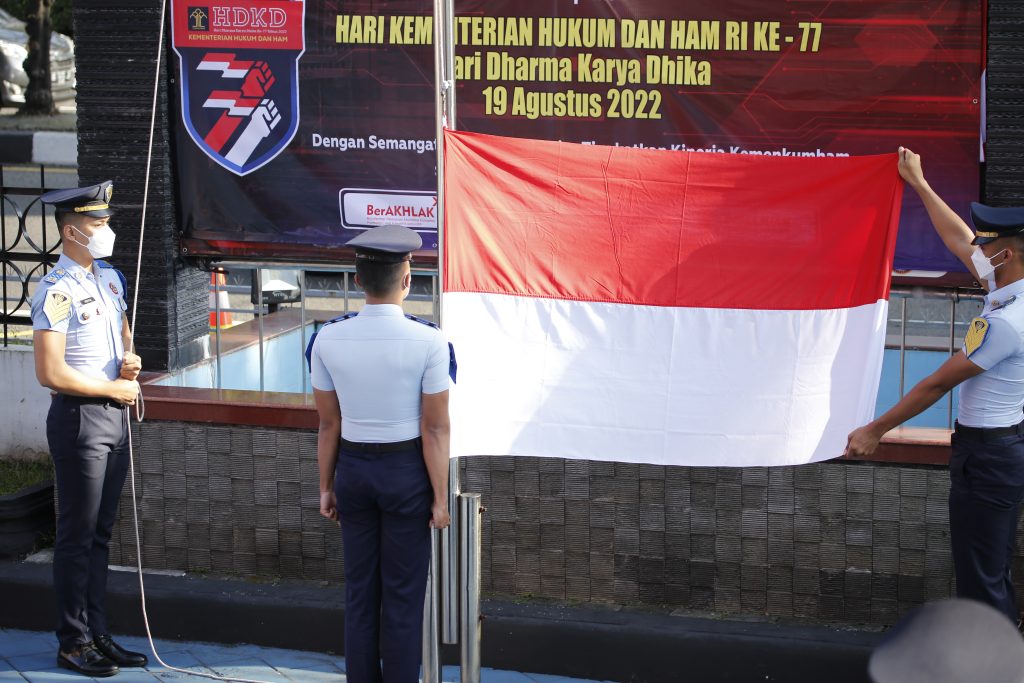 “Menjalani dinamika usia yang ke-77 saya berharap seluruh jajaran Kementerian Hukum dan HAM agar bekerja dengan baik dari waktu ke waktu didasari tata nilai PASTI dan BerAKLHAK. Bekerjalah dengan ikhlas, tanpa pamrih serta tanpa cela, berikanlah pengabdian yang terbaik bagi masyarakat, Kementerian Hukum dan HAM, Bangsa, dan Negara tercinta,” pesan Inspektur Upacara.