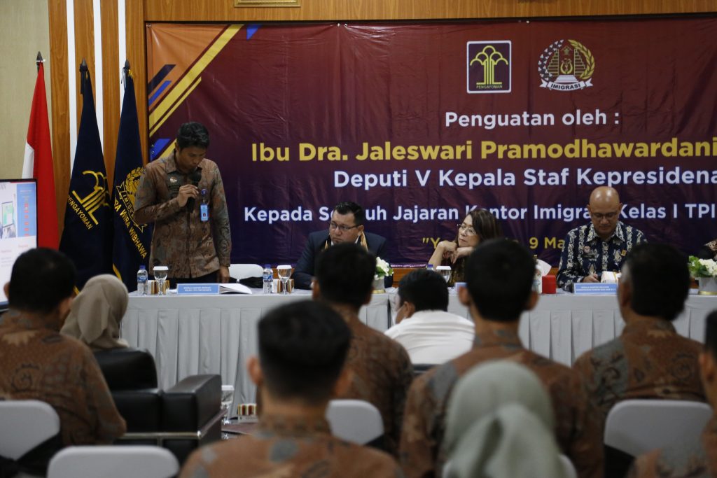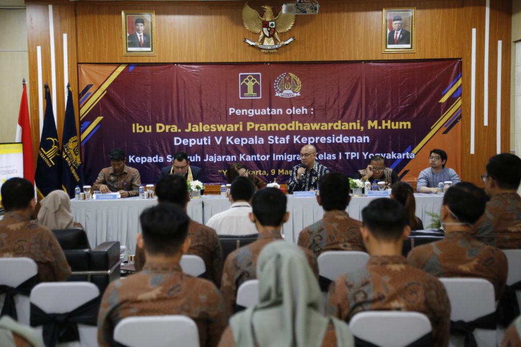 Kantor Imigrasi Kelas I TPI Yogyakarta menerima kunjungan dari tim Kantor Staf Presiden pada Kamis (09/03/2023). Tim tersebut dipimpin oleh Jaleswari Pramodhawardani selaku Deputi V Kepala Staf Kepresidenan. Kunjungan ini sendiri dilaksanakan dalam rangka verifikasi lapangan terhadap pembenahan pelayanan keimigrasian.